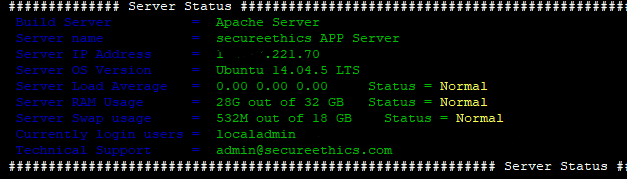 This script can be used for monitoring the server like RAM, Server Load, OS Version, Server IP, Swap space while login in ssh terminal and display the server status.